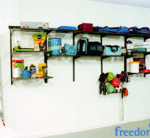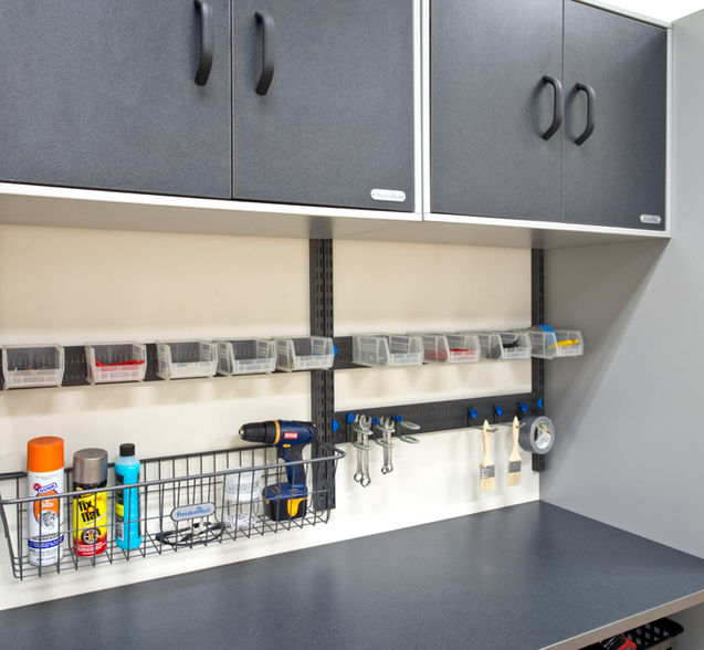 Garages are more than a place to just park the car though. These spaces have a heavy workload, often doing double duty as extra storage space. Freedom Rail Garage is a complete storage solution combining tough cabinetry, shelving and work tops with a variety of accessories to keep everything accessible and organized.